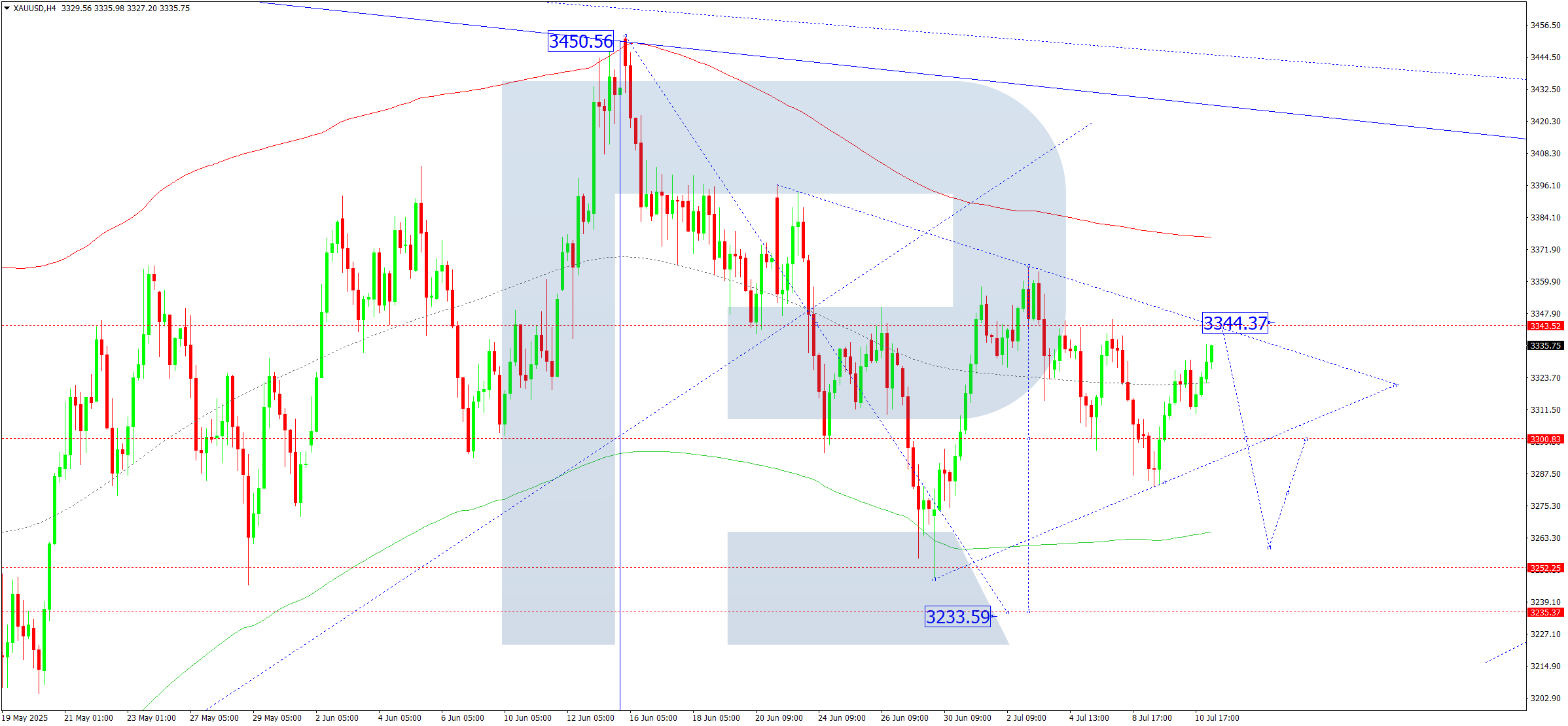 Gold remains in a consolidation phase around the $3300 level. A possible expansion toward $3344 is expected, followed by a reversal to $3300. If the price breaks below this range, the downward movement may extend toward $3233.